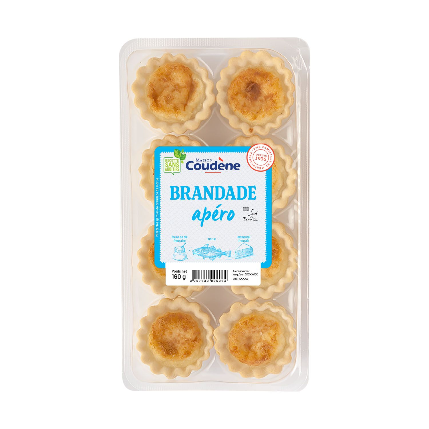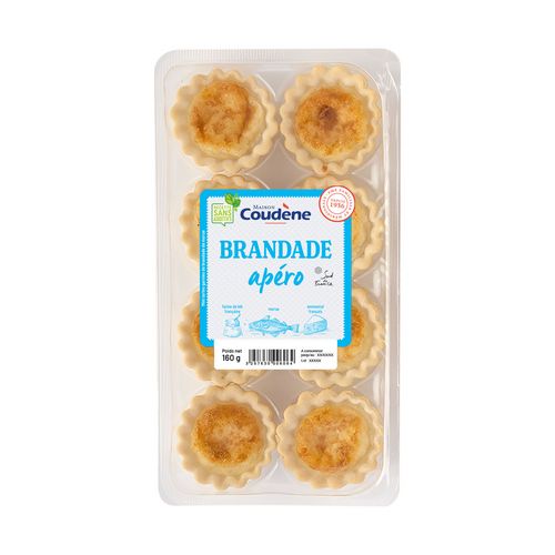 Création originale réalisée avec notre traditionnelle brandade de morue. Une pâte à pain croustillante généreusement garnie de brandade de morue et d'une couche d'emmental gratiné. Format idéal de tarte pour l'apéro.