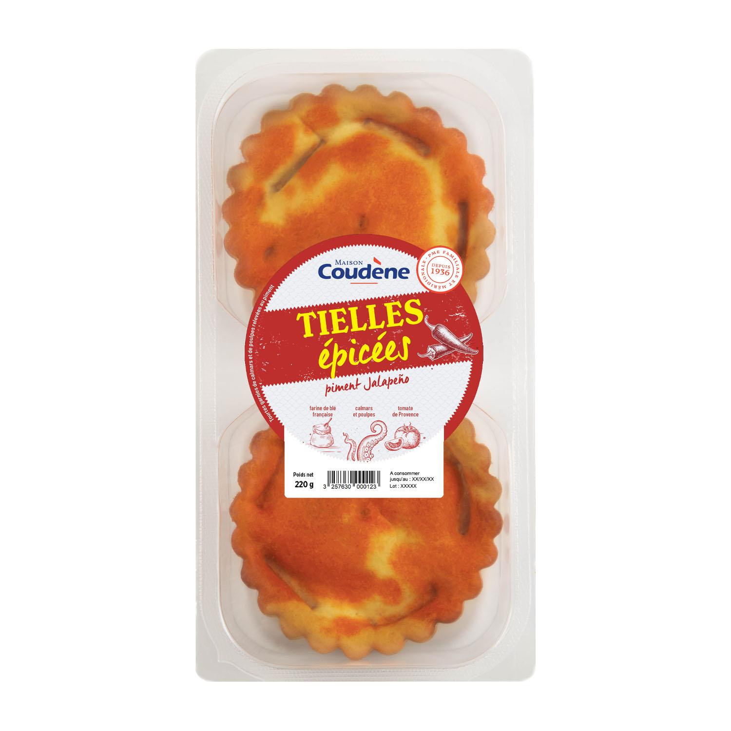 Les épicées sont une variante pimentée de la tielle sétoise. Cette tarte chapeautée de couleur orangée et safrannée à la bordure dentelée est généreusement garnie d'ingrédients de qualité. Concentré de saveurs méditerranéennes, on y retrouve des calamars et poulpes sauvages, de la farine d'origine française et des tomates de Provence. Cette recette est relevée avec du piment Serrano vert d'Andalousie, au goût frais et piquant.