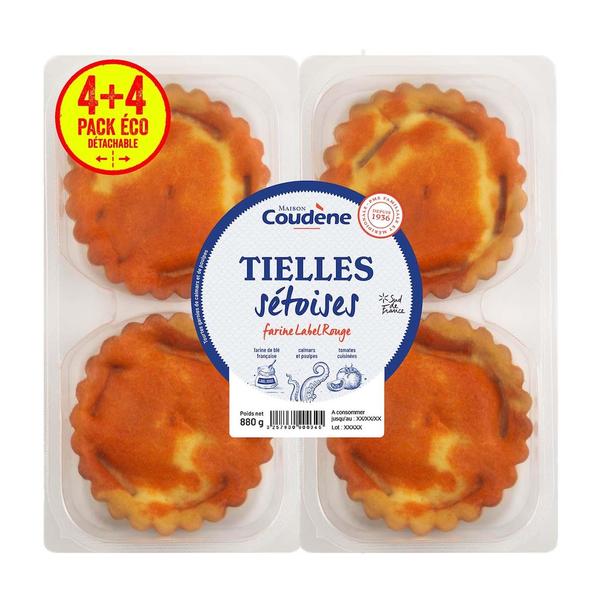 Ingrédients : Farine de BLÉ 33%, CALMARS et POULPES 25,2%, eau, huile de colza, double concentré de tomates 5,8%, oignons, huile d'olive vierge extra, herbes de Provence, persil, piment, ail, basilic, malt de BLÉ, sel, amidon de maïs modifié.