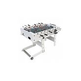 Avec le Scorpion Kick Football Table de Cougar, vous pouvez profiter d'une belle partie de football en un rien de temps. Sortez facilement le Scorpion Kick lorsque vous recevez des amis ou que vous voulez simplement jouer au football en famille. Comme le Scorpion Kick est pliable et ne pèse que 24 kg, il peut être déplacé facilement et rapidement. Grâce à cette table, les enfants peuvent se familiariser avec le jeu de baby-foot de manière simple et ludique. Jouer sur cette table de baby-foot est non seulement divertissant, mais aussi bon pour la coordination ?il-main et la réactivité. En bref, le baby-foot est non seulement un jeu amusant pour les jeunes et les moins jeunes, mais aussi très éducatif !. Le Scorpion Kick est peint en blanc avec un motif noir sur les côtés. Au-dessus de la base pliante se trouve une armoire montée avec des côtés de 15 mm d'épaisseur avec une couche supérieure en PVC. Il y a 11 joueurs bleus et 11 joueurs rouges attachés aux tiges de jeu épaisses de Ø12,7 mm. Les barres de jeu sont faciles à utiliser grâce aux poignées en plastique (PP). Les pare-chocs maintiennent les joueurs à distance des murs afin qu'ils ne soient pas endommagés. Assurez-vous que les barres restent faciles à utiliser en les vaporisant régulièrement avec un lubrifiant (non inclus). Terrain de jeu. Le terrain de jeu est de couleur vert foncé avec des lignes blanches et a une superficie de (Lxl) 105 x 57,8 cm. Le terrain a une épaisseur de 5 mm et possède une couche supérieure en PVC avec des coins inclinés pour que la balle continue de rouler. Le Scorpion Kick Football Table est livré avec 2 balles (Ø31 mm) et est garanti 2 ans.