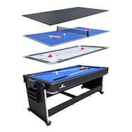 Contient : Table multi-jeux Cougar 4-en-1 noire Jeux et accessoires Table de billard (avec 2 queues de 145 cm). 1 jeu de boules de billard de 5,7 cm. 2 queues de billard. 1 triangle. Table de air hockey (avec 2 poussoirs de 9,6 cm et 2 palets de 6,3 cm). Table de ping-pong (avec 2 raquettes, 3 balles et un filet). Compteur de score manuel. Caractéristiques Table multi-jeux 4 en 1 noire de 2,13 m. Idéale pour toute la famille. Charge maximale supportée : 150 kg. Puissance du moteur de l'air hockey : 220-240 V CA, 50/60 Hz, 0,3 A. Type de prise : prise européenne de type C. Accoudoir inclus. Plateau en PVC et MDF de 12 mm d'épaisseur. Table de jeu : MDF de 12 mm d'épaisseur. Les plateaux de jeu sont facilement interchangeables. Accessoires inclus. Pour 2 à 4 personnes. Temps de montage : 60 minutes. À partir de 6 ans. Poids : 114 kg. Garantie 2 ans. Dimensions Dimensions de la table de jeu (L x l x H) : 213 x 117 x 85 cm. Dimensions du plateau de jeu (L x l x H) : 202 x 111 x 1,2 cm.