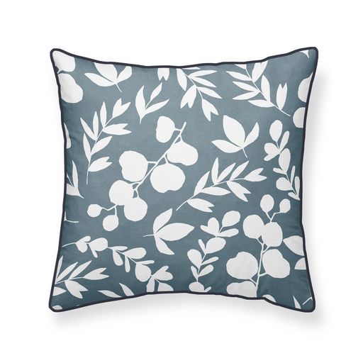 Motif végétal blanc sur fond bleu grisé, c'est une nature revisitée qui s'invite dans la maison avec ce ravissant coussin. Un coussin carré joliment fini d'un passepoil uni, à mixer avec plein d'autres coussins pour se créer une déco chaleureuse et très tendance. A noter, ce coussin est déhoussable