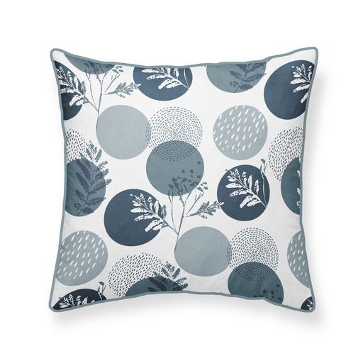 Un délicat motif feuillage sur fond de grosses pastilles en camaïeu de bleu grisé pour un coussin résolument contemporain. Un coussin carré joliment fini d'un passepoil uni, à mixer avec plein d'autres coussins pour se créer une déco chaleureuse et très tendance. A noter, ce coussin est déhoussable