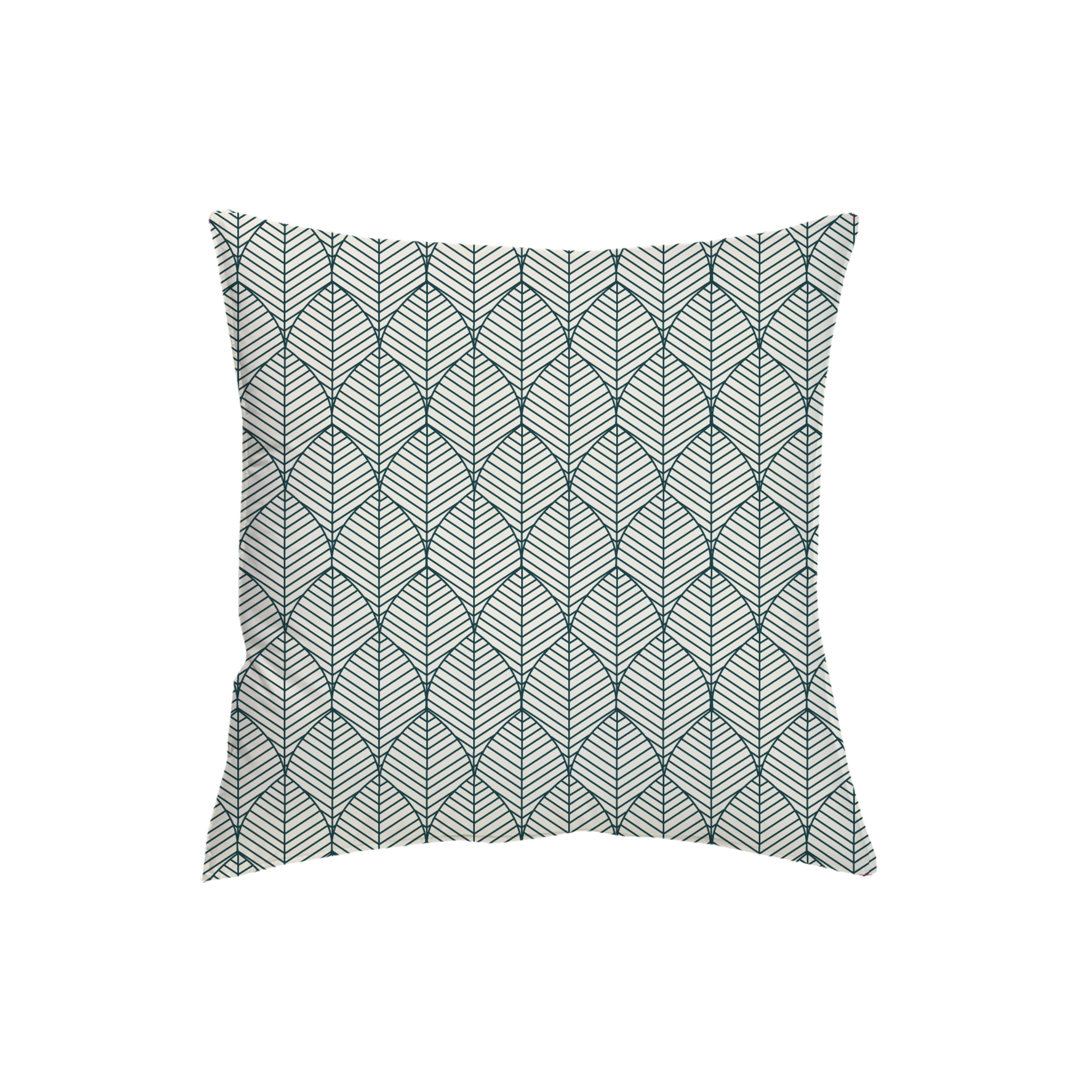 Carré ou rectangulaire, un coussin revêtu d'un joli tissu motif feuillage stylisé. Un coussin très déco qu'on mixe avec plein d'autres coussins pour se créer un intérieur cosy à souhait. A noter, ce coussine st déhoussable.
