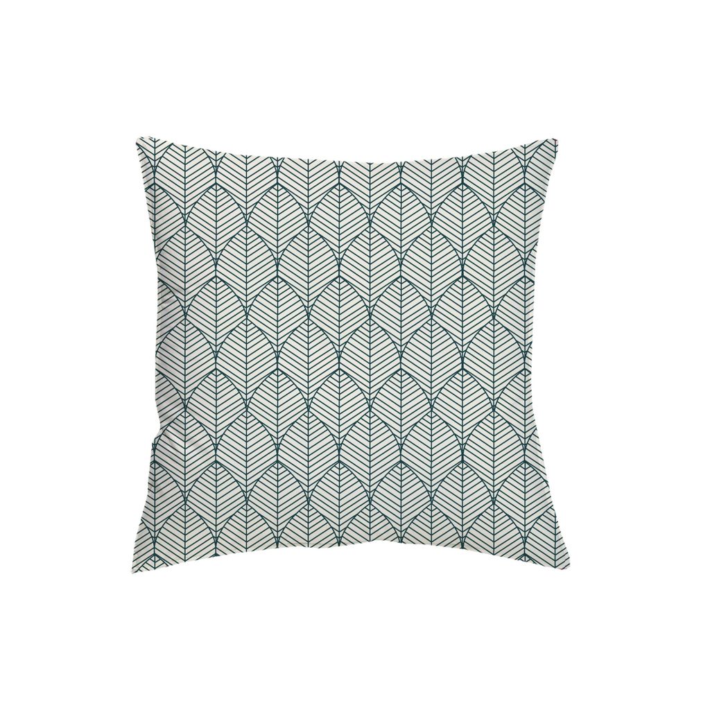 Coussin déco en coton déhoussable imprimé motifs feuilles