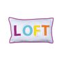 Un petit coussin pile dans la tendance : grandes lettres flashy, forme rectangulaire, liseré contrastant... A adopter d'urgence et à mixer avec beaucoup de coussins de toutes tailles, formes et couleurs pour une déco vivante et joyeuse !
