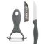 Informations Techniques : Dimensions : L. 20 x l. 13 x P. 3,2 cm Couteau : H. 17,50cm Eplucheur : H. 8,20 cm Matières : Céramique, ABS & Plastique Spécificités : Couteau & Eplucheur inclus Pratique & Astucieux Protection couteau Poids : 0,045 Kg Couleur : Gris
