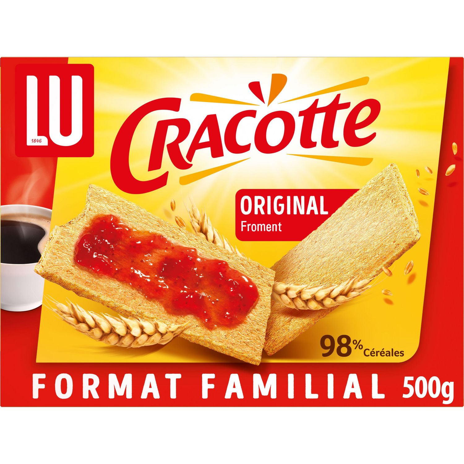Craquez avec Cracotte Original au Froment dans un format familial. Cracotte c'est une tartine croustillante, fondante, à la texture aérée qui réveillera les papilles de toute la famille pour le petit déjeuner ! Nos Cracotte sont riches en céréales et sont issues d'une sélection rigoureuse de matières premières de qualité. En effet, notre blé est récolté en France et nos produits sont fabriqués à Vervins. Craquez en famille pour Cracotte et son Crac-Crac : le secret de la bonne humeur au petit-déjeuner ou au goûter.