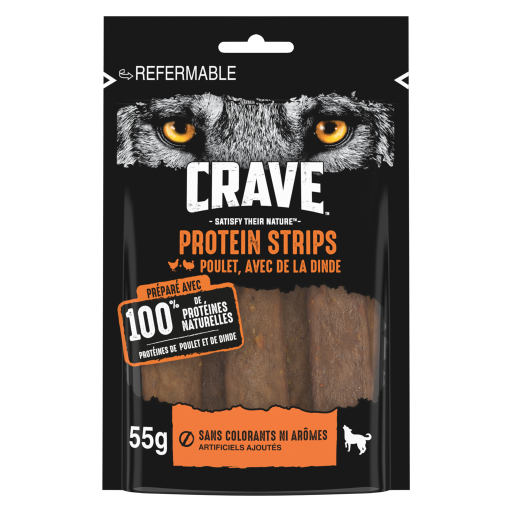 CRAVE Protein Strips Poulet avec de la Dinde pour Chien 7x55g