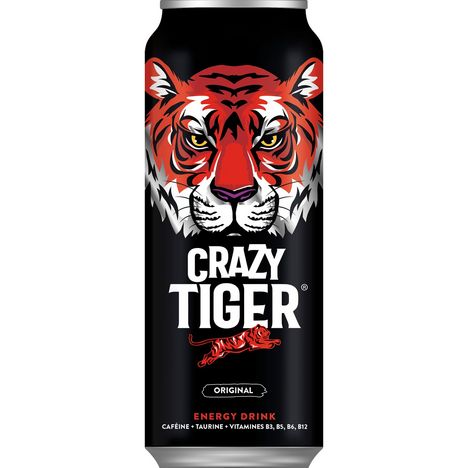 La boisson énergisante aujourd’hui la mieux évaluée* par les consommateurs grâce à sa recette française : son rafraichissement et l’équilibre de ses saveurs sauront vous faire plaisir que ce soit dans le cadre d’une soirée, d’une pause détente ou simplement pour retrouver l’énergie d’affronter votre journée. Crazy Tiger apporte 40% des apports journaliers en vitamines B3, B5, B6 et B12 et contient 2 fois moins de sucre que la moyenne du segment avec seulement 4,4 g de sucre pour 100ml. Disponible en canette 500 mL, idéale pour les grandes soifs ! *Test Consopole Octobre 2021, 140 répondants.