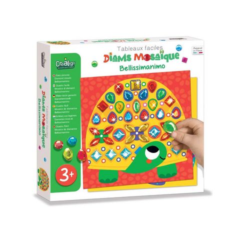 Des coffrets qui permettront aux enfants de créer de belles mosaïques scintillantes grâce aux diamants colorés ! tableaux animaux, 281 pierres colorées autocollantes, un chevalet de présentation et une notice modèle.