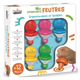 Lot de 5 feutres ergonomiques pour les tout petits. Ces 5 Feutres de couleurs différentes sont lavables et faciles à tenir dans la main avec leur prise arrondie.