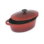 Découvrez la cocotte en fonte d'acier émaillée de la gamme Grand Chef de Crealys. Cette cocotte ovale rouge avec intérieur noir est idéale pour cuire divers plats. Sa capacité de 4 litres convient pour 4 à 6 personnes. Compatible avec tous types de feux y compris induction. Avec ses dimensions de 28
