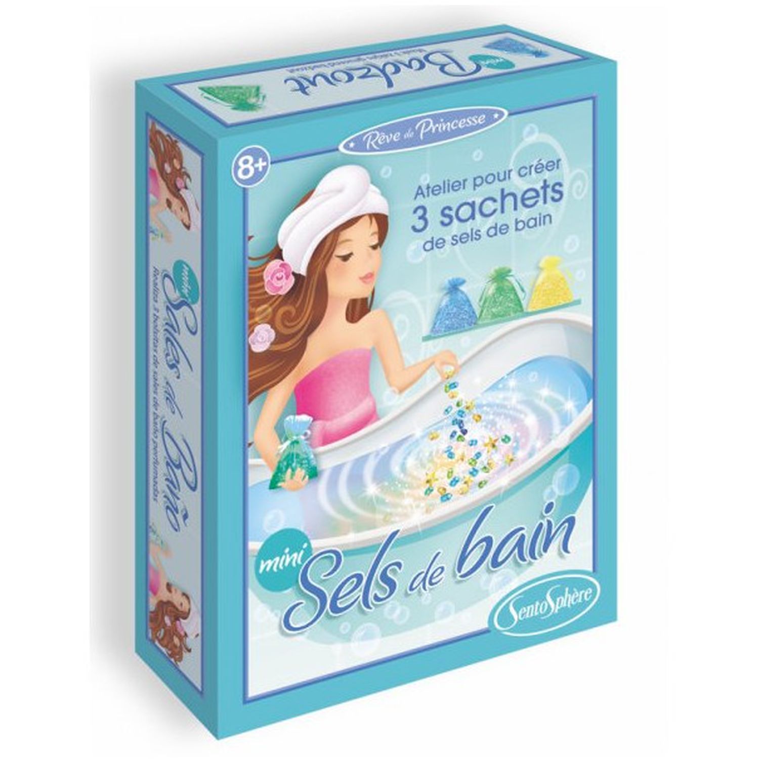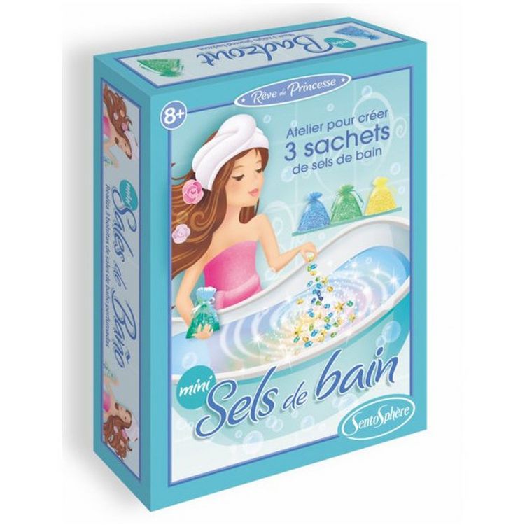 Découvrez le coffret mini sels de bain de Sentosphère, un coffret créatif Mon atelier du bain à partir de 8 ans pour réaliser 3 sachets de sels de bains. Des parfums, des extraits d'algues, des étoiles multicolores, du gros sel marin à mélanger dans un verre puis à conditionner dans des petites bourses. Idéal pour faire un petit cadeau ou pour s'offrir un bain aussi adoucissant que déstressant. Un coffret cadeau pour les anniversaires de copines. Ce coffret contient 100g de sel, un colorant bleu parfumé, un colorant jaune parfumé, 2 pipettes, 3 sachets d'organza et la notice explicative. Dimensions de la boite : 13 x 17,5 x 4 cm