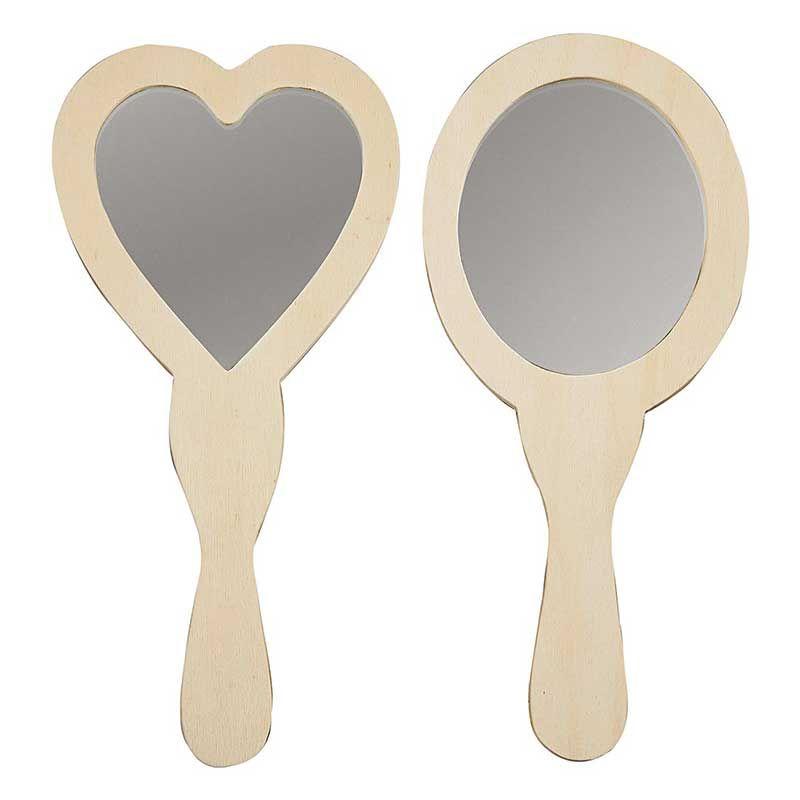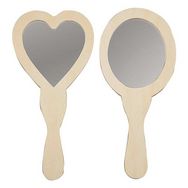 2 miroirs à main en bois à décorer Coeur et ovale 24 cm