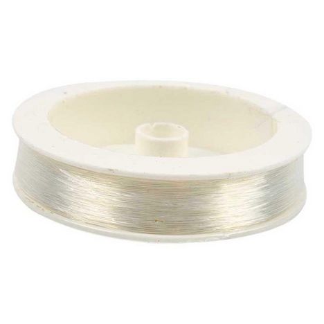 Bobine de fil transparent de la marque Creotime. Très résistant, transparent, quasiment invisible dans certaines dispositions, le fil de nylon sert à confectionner des bijoux fantaisie, tels les bracelets et les colliers. Ce fils mesure 100 m et est épais de 0,5 mm.