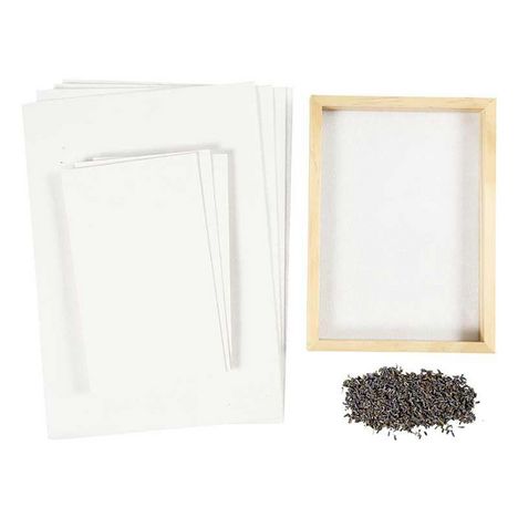 Kit facile - fabrication du papier. Kit complet pour fabriquer son propre papier format A5 chez soi. Activité éco-responsable et ludique. Ce cadre en bois est une activité manuelle et ludique zéro déchet pour les enfants comme les adultes! Vous pourrez réaliser vous même du papier ensemencé. Belle idée pour créer vos cartes de vœux, d'invitation, de Noël, faire part. Vous pouvez même décorer votre cadre en bois avec la technique de pyrogravure. Ce kit vous permet de réaliser 4 feuilles de papier parsemées de grain de lavande. 1 Tamis à papier format A5. 65 g de pâte à papier de cellulose. 4 papier absorbant. 1 sachet de lavande séchée. Instructions fournies