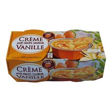 LAIT demi-écrémé (57.7%), CREME (16.1%), sucre, OEUFS entiers extra-frais (10%), poudre de LAIT écrémé, amidon modifié de maïs, amidon de riz, arôme, colorant : caroténoïdes.