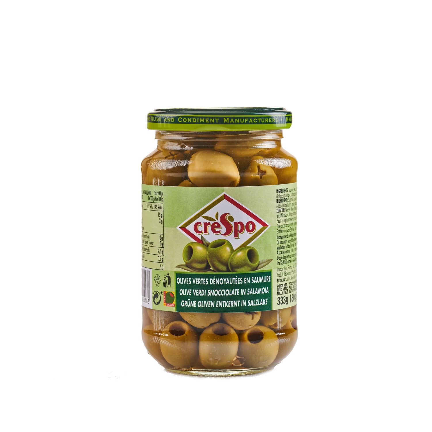 Olives vertes dénoyautées en saumure