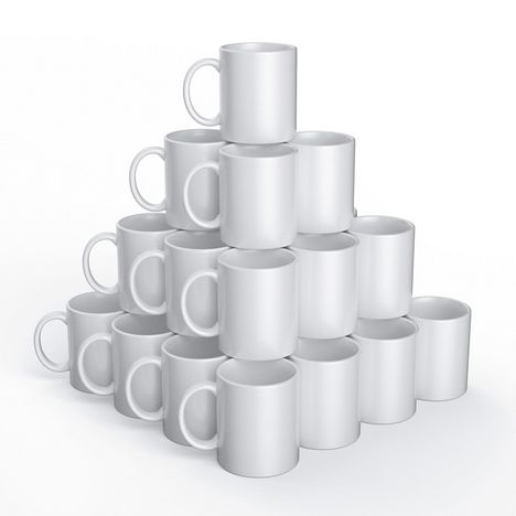 36 tasses Cricut en céramique blanche à personnaliser avec la Cricut Mug Press et les produits Infusible Ink. Contenance 340 ml.