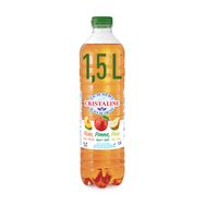 Boisson à l'eau de source Cristaline au jus de fruits à base de concentrés avec édulcorant, saveur pêche pomme poire.