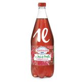 Eau de source Cristaline gazéifiée avec adjonction de gaz carbonique (85%); sucre, jus de fruits à base de concentré 10% (jus de framboise 4%, jus de grenade 3.1%, jus de pomme 2.9%), colorants : extraits colorants de carotte pourpre et carthame, acidifiant : acide citrique, arôme naturel.