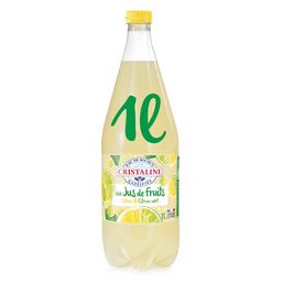 Boisson à l'eau de source Cristaline Gazéifiée avec adjonction de gaz carbonique, au jus de fruits à base de concentrés et à l'arôme naturel de citron et de citron vert