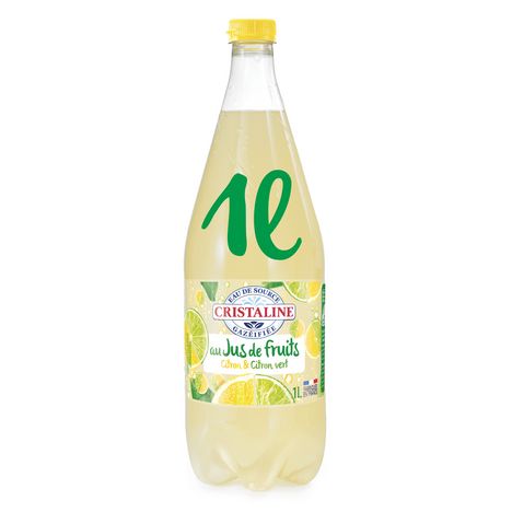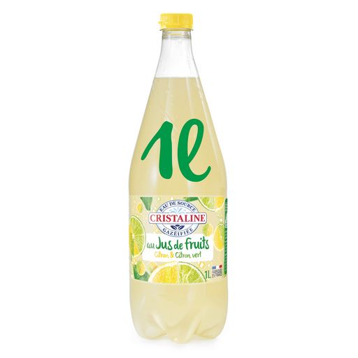 Eau de source Cristaline gazéifiée avec adjonction de gaz carbonique (85%), jus de fruits à base de concentré 10% (citron 9%, citron vert 1%), sucre, arôme naturel de citron et de citron vert, acidifiant : acide citrique.