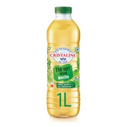 Boisson à l'eau de source Cristaline et aux infusions de thé vert, thé noir et de feuille de stévia, aromatisée saveur menthe