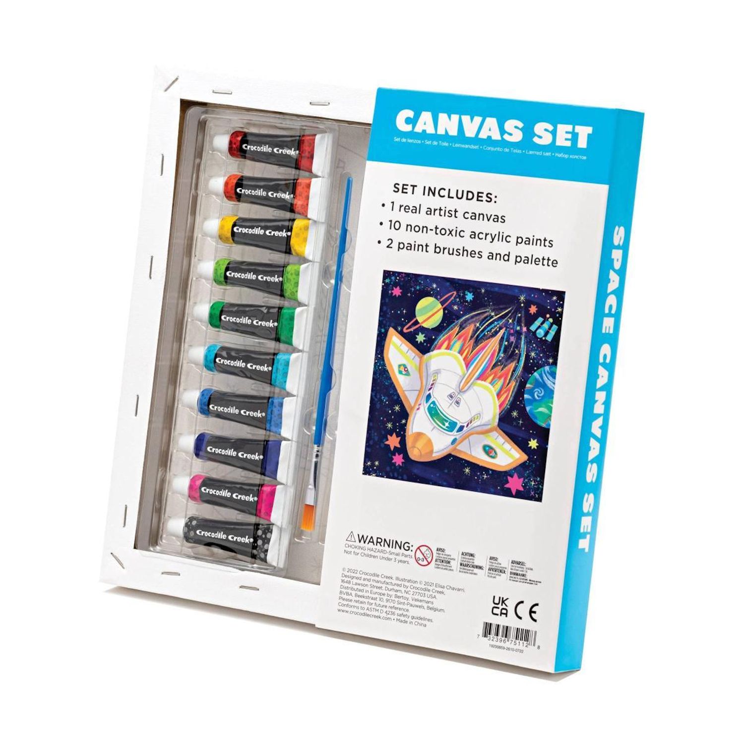 Kit de peinture pour enfant. contient: peintures, pinceau et une toile cartonné illustrer à peindre