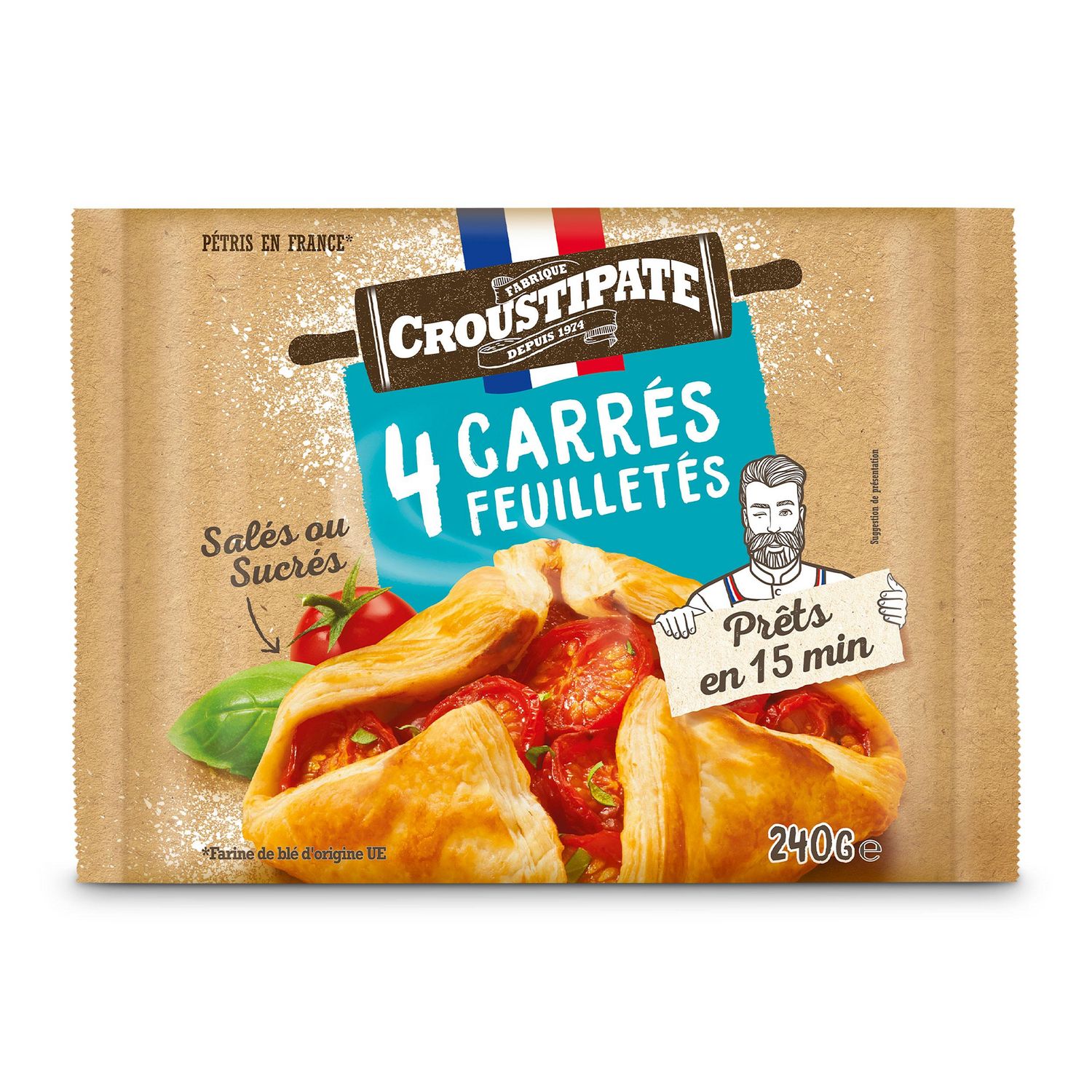 4 carrés de pâte feuilletée prêts à cuire