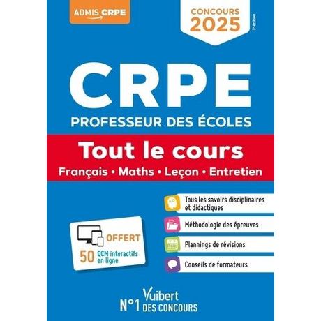 L'ouvrage indispensable pour exceller à toutes les épreuves du CRPE 2025 (M2) ! Mettez toutes les chances de votre côté en préparant les épreuves écrites de français et maths ainsi que les épreuves orales de leçon et entretien du concours de professeur des écoles, grâce à notre tout-en-un et : sa présentation des épreuves , ses plannings de révisions , sa méthode pas à pas, assortie de conseils de formateurs , son cours complet traitant des connaissances à maîtriser : notions disciplinaires et didactiques. En complément de l'ouvrage, nous vous offrons 50 QCM interactifs de français et de maths ainsi que tous les conseils à suivre et pièges à éviter.