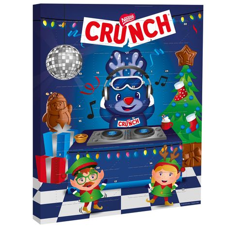 Patientez jusqu'à Noël avec le nouveau Calendrier de l'Avent CRUNCH ! Ce calendrier de l'avent contient 24 figurines au chocolat au lait au riz soufflé croustillant. Avec le Plan Cacao NESTLE, et en partenariat avec Rainforest Alliance, CRUNCH s'engage pour une production plus durable de cacao et contribue à soutenir les cultivateurs et leurs communautés.
