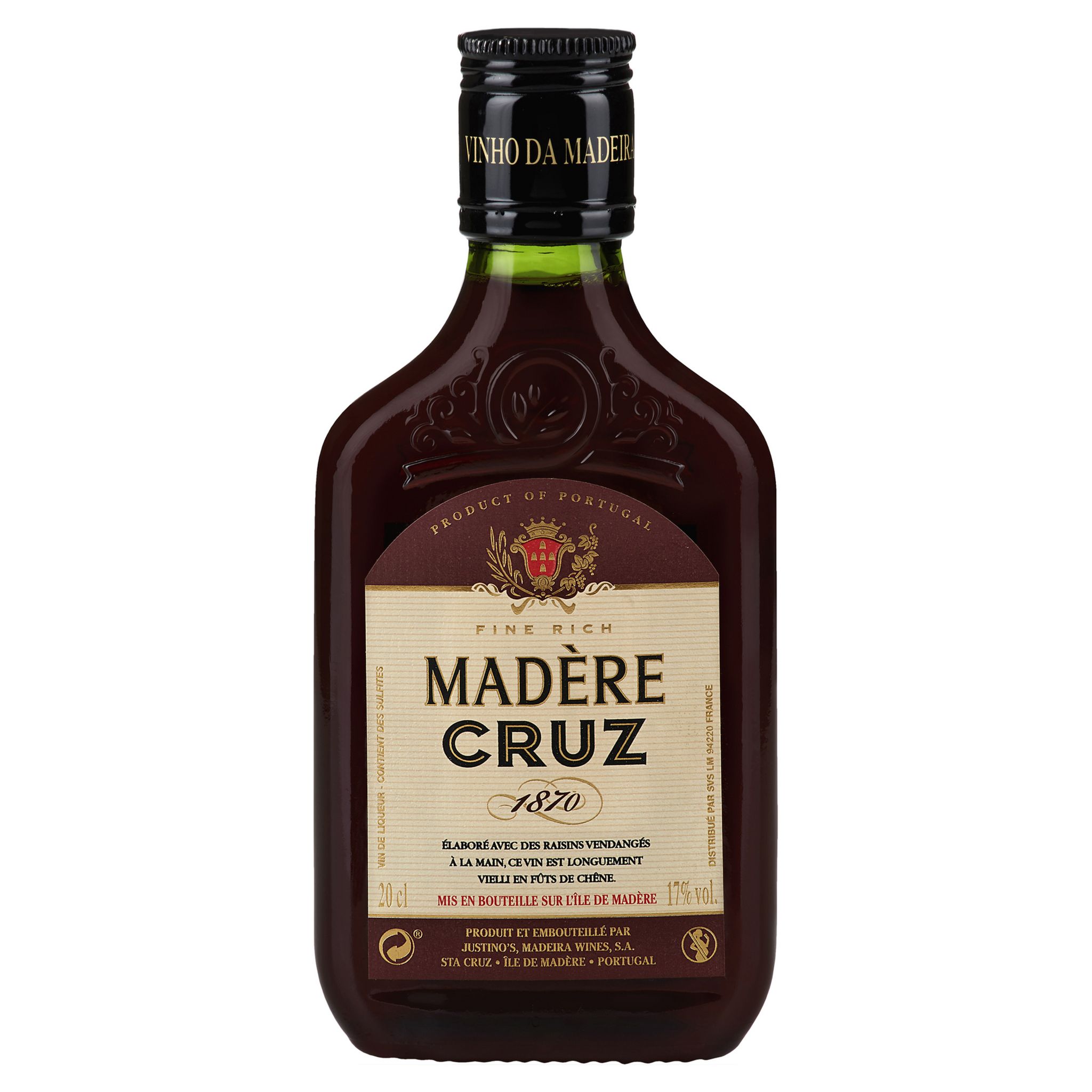 CRUZ Madère est un vin de liqueur portugais, élaboré et vieilli sur l'île de Madère dans le respect de la tradition. Il dévoile une robe aux tonalités acajou et un bouquet aux arômes délicats révélant un goût légèrement fumé, torréfié et corsé. Il se déguste à l'apéritif ou en digestif. Il peut également parfumer certains mets. C'est sur l'île volcanique de Madère, au Sud-Ouest du Portugal, que sont élaborés les vins de Madère CRUZ à partir de cépages vendangés à la main entre mi-août et octobre. Après leur fermentation, les jus transformés en vins sont mutés avec l'ajout d'alcool vinique. L'une des phases spécifiques de leur élaboration est un chauffage à 45° pendant plusieurs mois qui leur confère un goût typique avec des notes fumées. Ils vieillissent ensuite lentement en fûts de chêne.