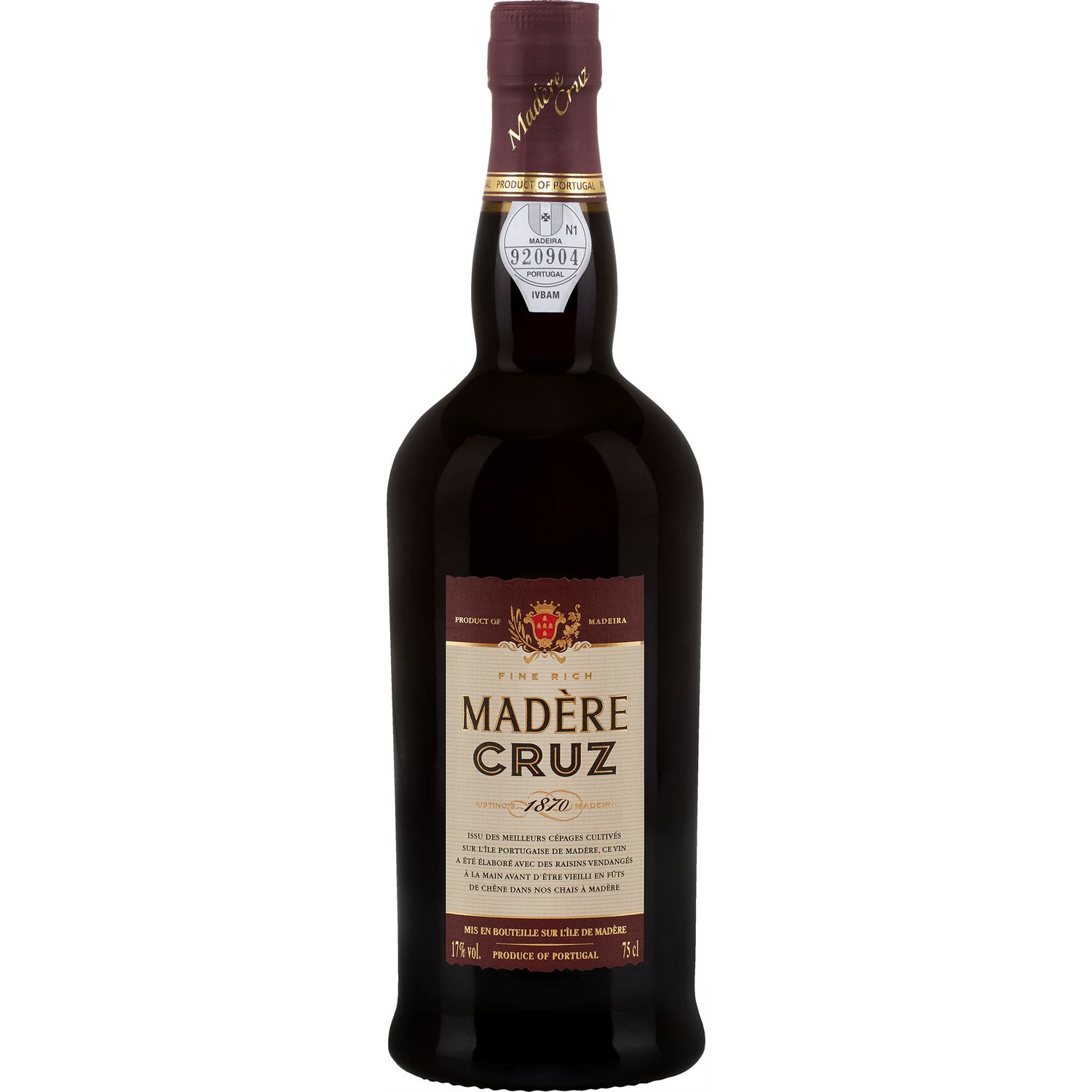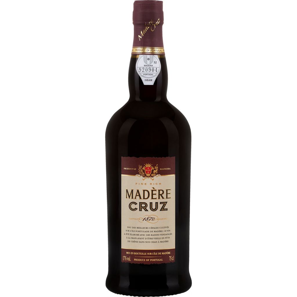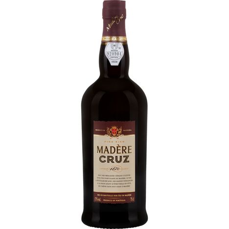 CRUZ Madère est un vin de liqueur portugais, élaboré et vieilli sur l'île de Madère dans le respect de la tradition. Il dévoile une robe aux tonalités acajou et un bouquet aux arômes délicats révélant un goût légèrement fumé, torréfié et corsé. Il se déguste à l'apéritif ou en digestif. Il peut également parfumer certains mets. C'est sur l'île volcanique de Madère, au Sud-Ouest du Portugal, que sont élaborés les vins de Madère CRUZ à partir de cépages vendangés à la main entre mi-août et octobre. Après leur fermentation, les jus transformés en vins sont mutés avec l'ajout d'alcool vinique. L'une des phases spécifiques de leur élaboration est un chauffage à 45° pendant plusieurs mois qui leur confère un goût typique avec des notes fumées. Ils vieillissent ensuite lentement en fûts de chêne.