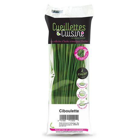 CIBOULETTE BARQ 11G CUEILLETTES& CUISINE La ciboulette reconnaissable par sa tige longue et fine est une des plantes les plus utilisées en cuisine. Ses fines feuilles odorantes vous rappellent l'echalotte. La ciboulette est utilisée en cuisine comme condiment.