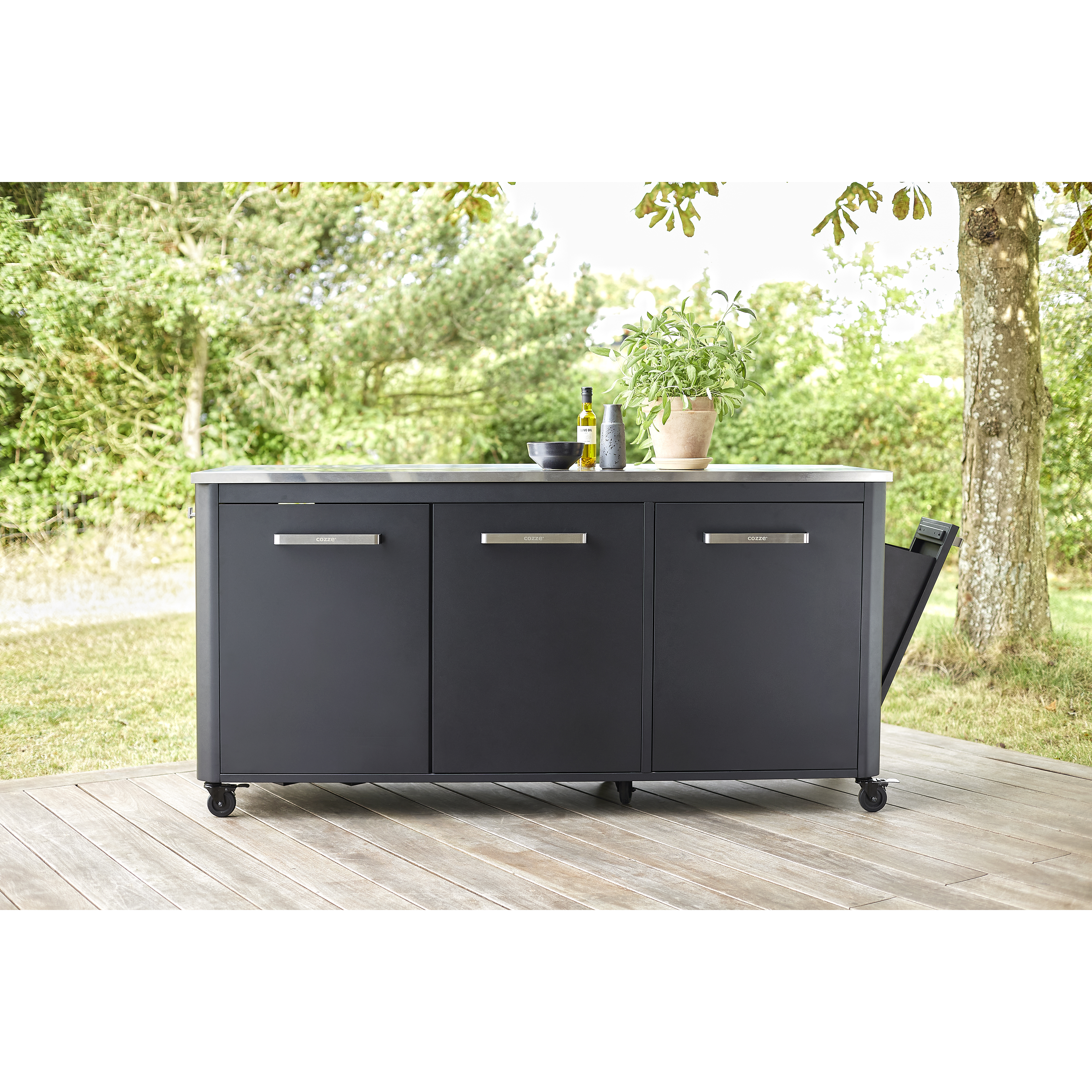Table Cozze pour la cuisine extérieure avec poubelle intégrée, 3 portes,