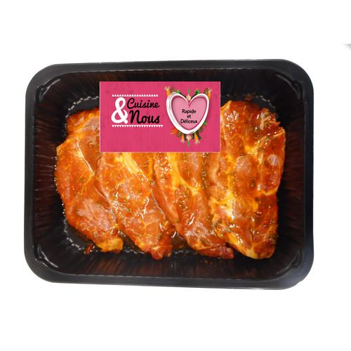 Ingrédients : 90% Viande de Porc origine france ; eau ; maltodextrine, correcteurs d'acidité: lactate de potassium, citrates de sodium, acétates de sodium ; huile d'olive, sel, épices ; plantes aromatiques (dont herbes de Provence 0.1%); tomate ; poivron; antioxydants : ascorbate de sodium, acide ascorbique ; arômes naturels; épaississant: gomme de guar.