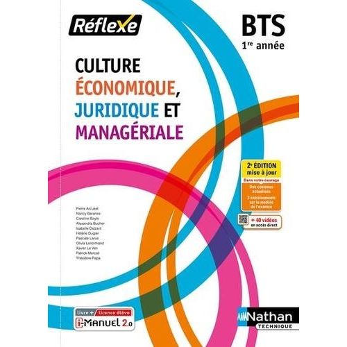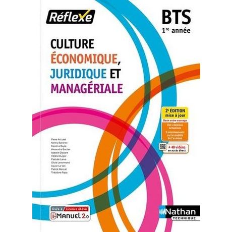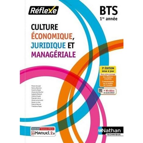 Cet ouvrage consommable, dans la collection Réflexe en Culture Economique, Juridique et Managériale pour la 1re année, conforme au programme propose de nouveaux cas d'études tirés de l'actualité politique, économique, sociale et sociétale récente. Il est proposé au choix en livre papier + licence numérique i-Manuel ou en 100% numérique i-Manuel. En version imprimée, cet ouvrage propose en complément une licence numérique i-Manuel 2. 0, la solution pour mettre les élèves en activité sur ordinateur ou sur tablette. >> Les infos pratiques sur le i-Manuel 2. 0 à découvrir ci-dessous - La transversalité entre l'économie, le droit et le management est favorisée par l'étude d'une même entreprise pour chaque thème. L'entreprise est présentée en ouverture de thème, puis est étudiée de manière filée au sein de chaque chapitre par le biais d'une Application au cas à la fin de chaque compétence. - Chaque chapitre est structuré en s'appuyant sur les compétences du référentiel. La découverte des savoirs se fait par l'étude de documents de nature variée (documentation d'entreprise, articles de presse, schémas...) à portée économique, juridique et managériale. - Des pages d'activités sont proposées en fin de chapitre et permettent de retravailler ou d'approfondir les compétences du chapitre grâce à des exercices d'entraînement. - Une synthèse schématique conclut chaque chapitre, avec la liste des concepts à retenir. - Des entraînements à l'examen sont proposés. - 40 vidéos sont proposées et repérées dans l'ouvrage par des QR Codes et mini-liens.