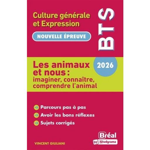 Une préparation efficace pour réussir l'épreuve de culture générale et expression du BTS 2026. Cet ouvrage vous propose : - Cinq études pour acquérir une culture générale sur le thème Les animaux et nous : imaginer, connaître, comprendre l'animal avec un cours accompagné de nombreux documents indi
