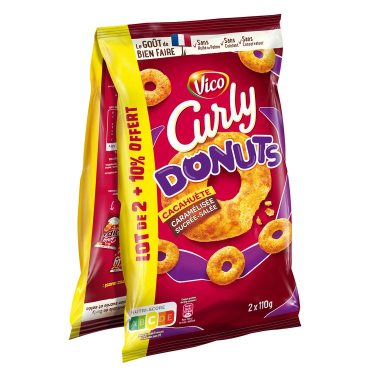 Notre Curly Donuts revient avec une nouvelle saveur ultra gourmande : cacahuète caramélisée. Un gout sucré-salé inédit et une forme fun pour un max de gourmandises !