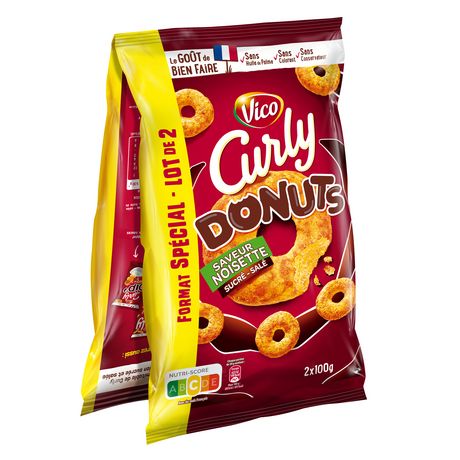 Produit soufflé à base de maïs, saveur noisette sucrée-salée.