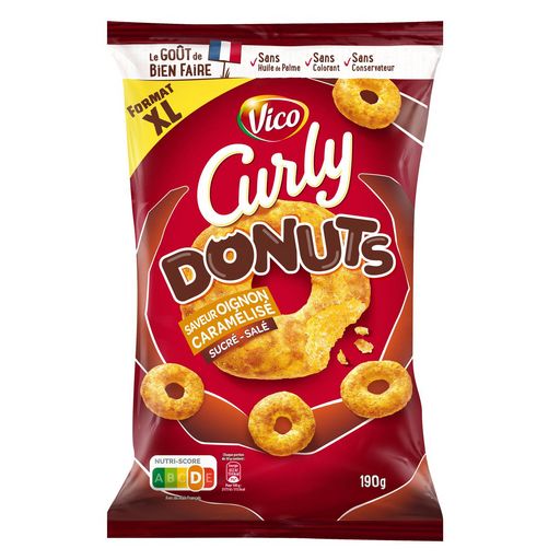 Notre Curly Donuts revient avec une nouvelle saveur ultra gourmande : oignons caramélisés. Un gout sucré-salé inédit et une forme fun pour un max de gourmandise !