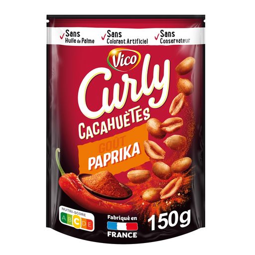 Curly, l'expert des cacahuètes vient réveiller vos apéros ! Découvrez une explosion de saveurs grâce au mariage parfait entre la cachuète et le paprika légèrement fumé et épicé.