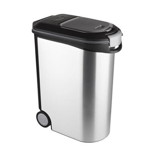 Conteneur a croquette 20kg - En polypropylene de haute qualité avec fraicheur préservée grâce a la fermeture hermétique - Grande ouverture prévue pour le rechargement des croquettes et petites ouvertures pour le versement - Aspect métal - Coloris : gris.