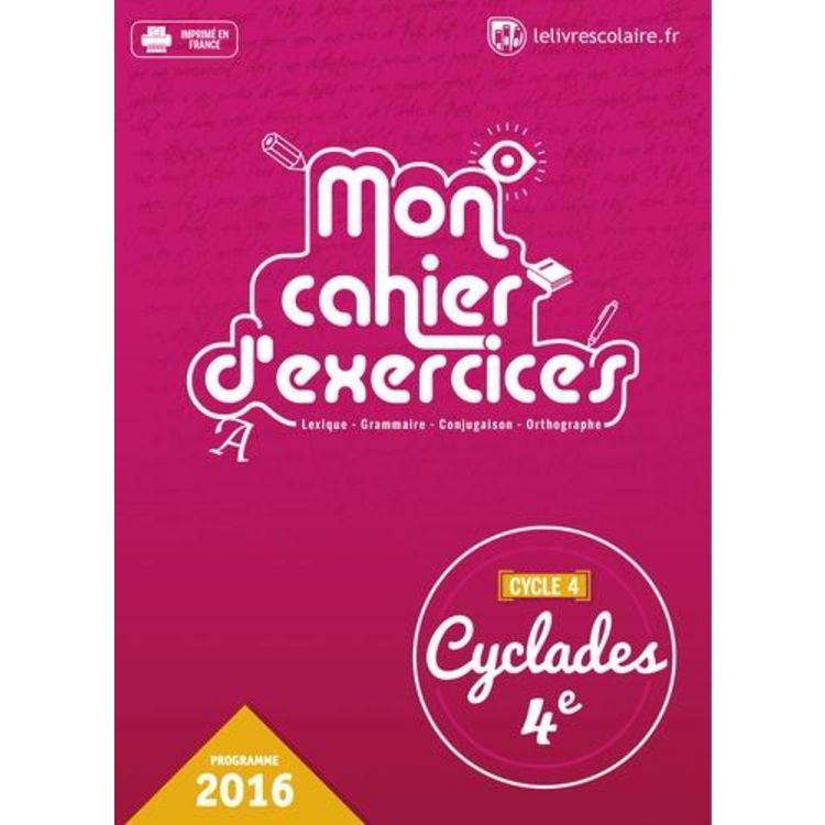 CYCLADES 4E. MON CAHIER D'EXERCICES, EDITION 2016, -