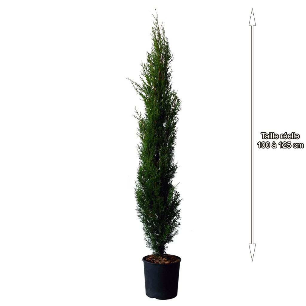 Le Cyprès de Provence est un conifère au port colonnaire, très élancé, étroit et très caractéristique. Son feuillage fin vert foncé est très dense. De croissance rapide et résistant au vent, on le plantera dans tous les sols même calcaires et il appréciera une exposition ensoleillée ou à la mi- ombre. Rustique, il résiste jusqu'à -20°c. Il a la particularité d'être très résistant aux maladies cryptogamiques. Pour obtenir une belle forme colonnaire, il est conseillé de pratiquer une taille, ce qui évite l’ouverture du branchage.