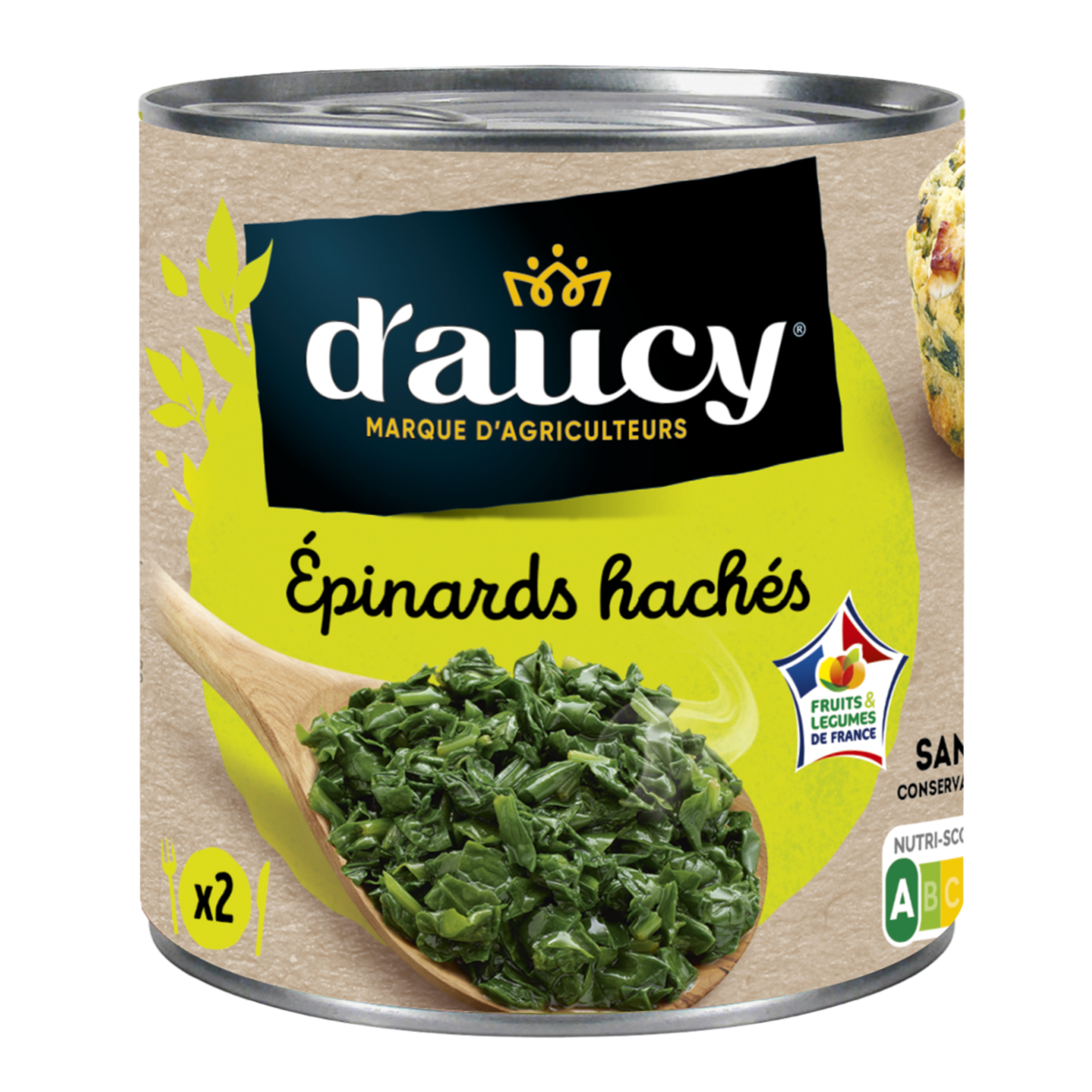 Origine France. Cultivés en plein champ par les agriculteurs de notre coopérative. Sélectionnés pour leur fondant et leur tendreté. Epinards hachés