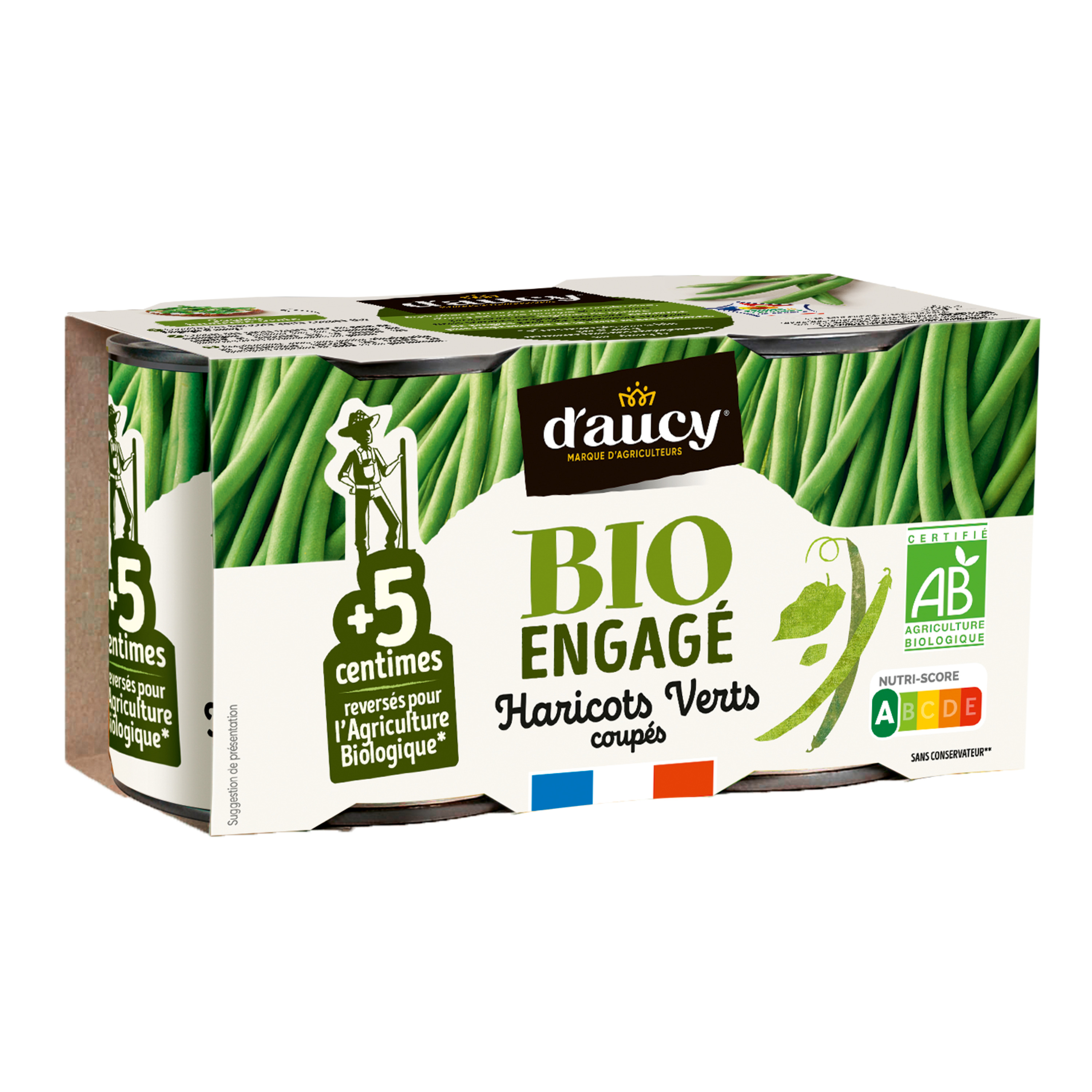 Haricots verts coupés sans sel ajouté issus de l'agriculture biologique française