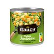Pommes de terre en cubes (25%), carottes en rondelles (25%), petits pois (25%), eau, huile de tournesol, jus concentré de carottes, persil, sel, ail en poudre, arôme naturel, oignons grillés en poudre, épaississant : gomme guar, poivre blanc en poudre.